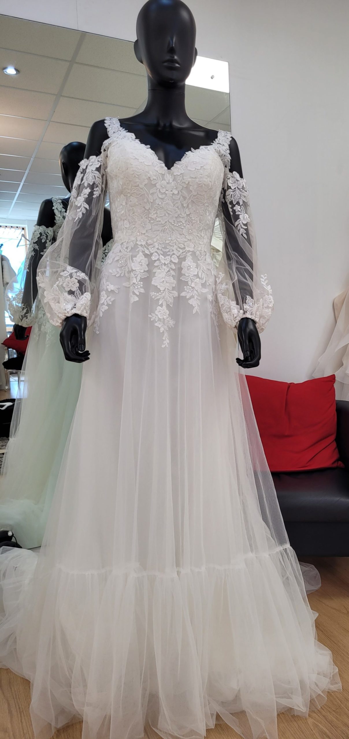 This gown is in excellent condition and is reduced to sell due to store renovation sale.