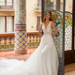 Telier is a perfect dress for the bride who wants a dual look. This fitted dress is made from a beautiful soft crepe like fabric complete with a detachable overskirt with beading at the top of the hem. Available in a size 12 in ivory. This is a smaller fitting size 12 approximate dress measurements are below, great for a day to night look all in one.
